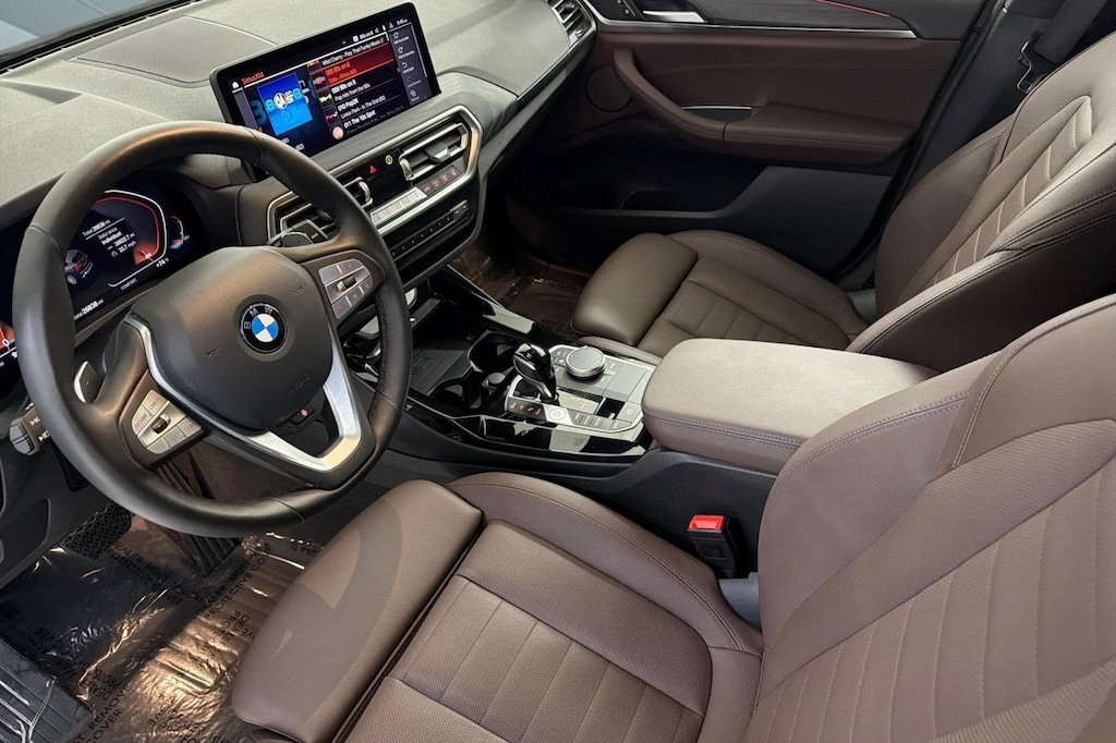 This 2023 BMW X3 sDrive30i is a One Owner vehicle with a Clean Carfax, exterior, and interior. Key features include FRONT VENTILATED SEATS, REMOTE ENGINE START, PREMIUM PACKAGE, MOCHA VERNASCA LEATHER UPHOLSTERY, WIRELESS CHARGING, FINE WOOD OPEN-PORED ASH GRAIN TRIM, HEATED STEERING WHEEL, HEATED FRONT SEATS, PARKING ASSISTANCE PACKAGE, PANORAMIC MOONROOF, HARMAN/KARDON SURROUND SOUND SYSTEM, and much more!