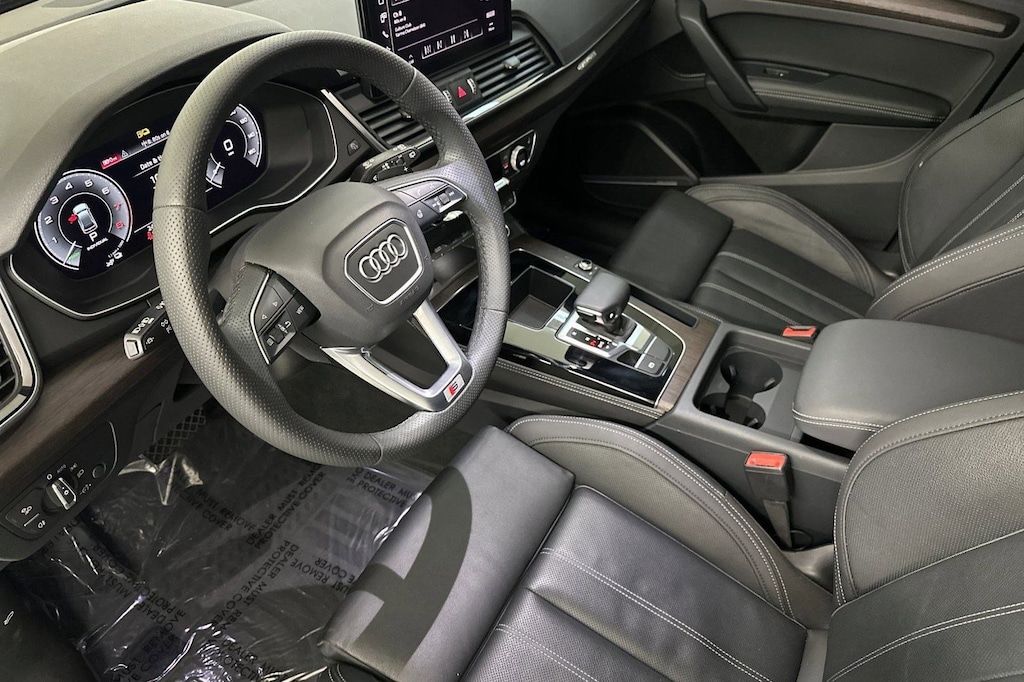 This 2024 Audi Q5 S line Premium Plus is a One Owner vehicle with a Clean Carfax, exterior, and interior. Key features include Turbocharged, Panoramic Roof, Headlights-Auto-Leveling, Bluetooth Connection, Heated Front Seat(s), Woodgrain Interior Trim, Leather Seats, Immobilizer, Blind Spot Monitor, Lane Departure Warning, Lane Keeping Assist, Rear Parking Aid, Cross-Traffic Alert, and much more!
