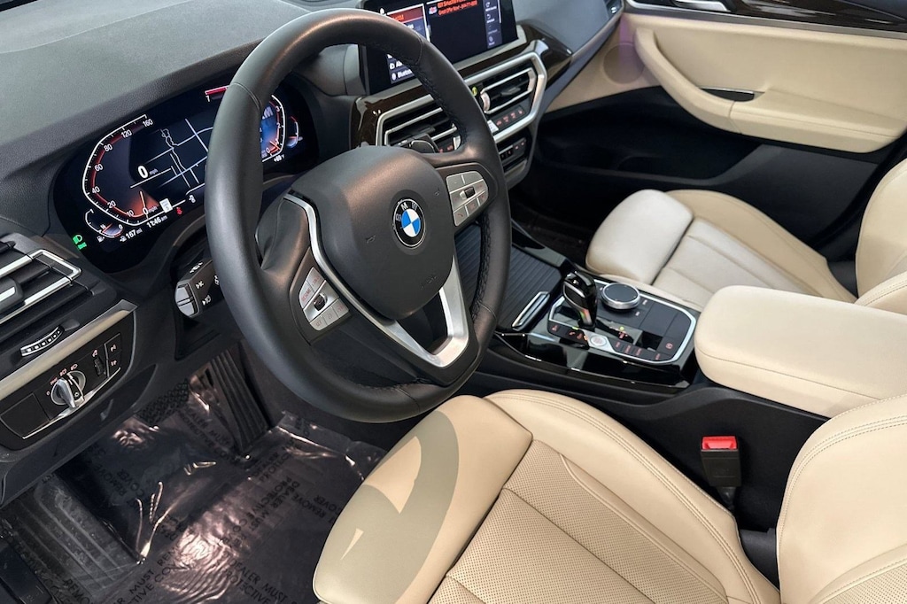 This 2023 BMW X3 sDrive30i is a One Owner vehicle, exterior, and interior. Key features include CANBERRA BEIGE PERFORATED SENSATEC UPHOLSTERY, HEATED FRONT SEATS, PANORAMIC MOONROOF, CONVENIENCE PACKAGE, Turbocharged, Bluetooth Connection, Navigation System, Rear Parking Aid, Blind Spot Monitor, Cross-Traffic Alert, and much more!