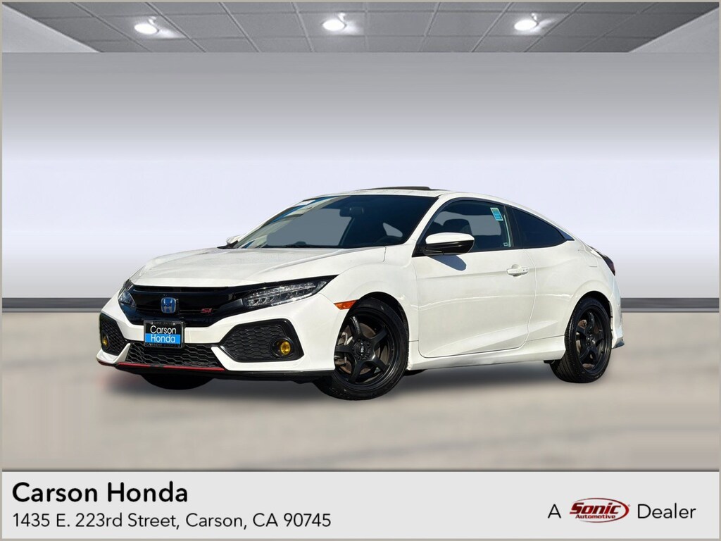 2018 Honda Civic Si Coupe Manual w/High Performance Tires, Turbocharged, Front Wheel Drive, Brake Assist, Sun/Moonroof, Daytime Running Lights, Steering Wheel Audio Controls, Bluetooth Connection, Heated Front Seat(s), Immobilizer, Traction Control, Stability Control, Back-Up Camera, White exterior, and Black interior.